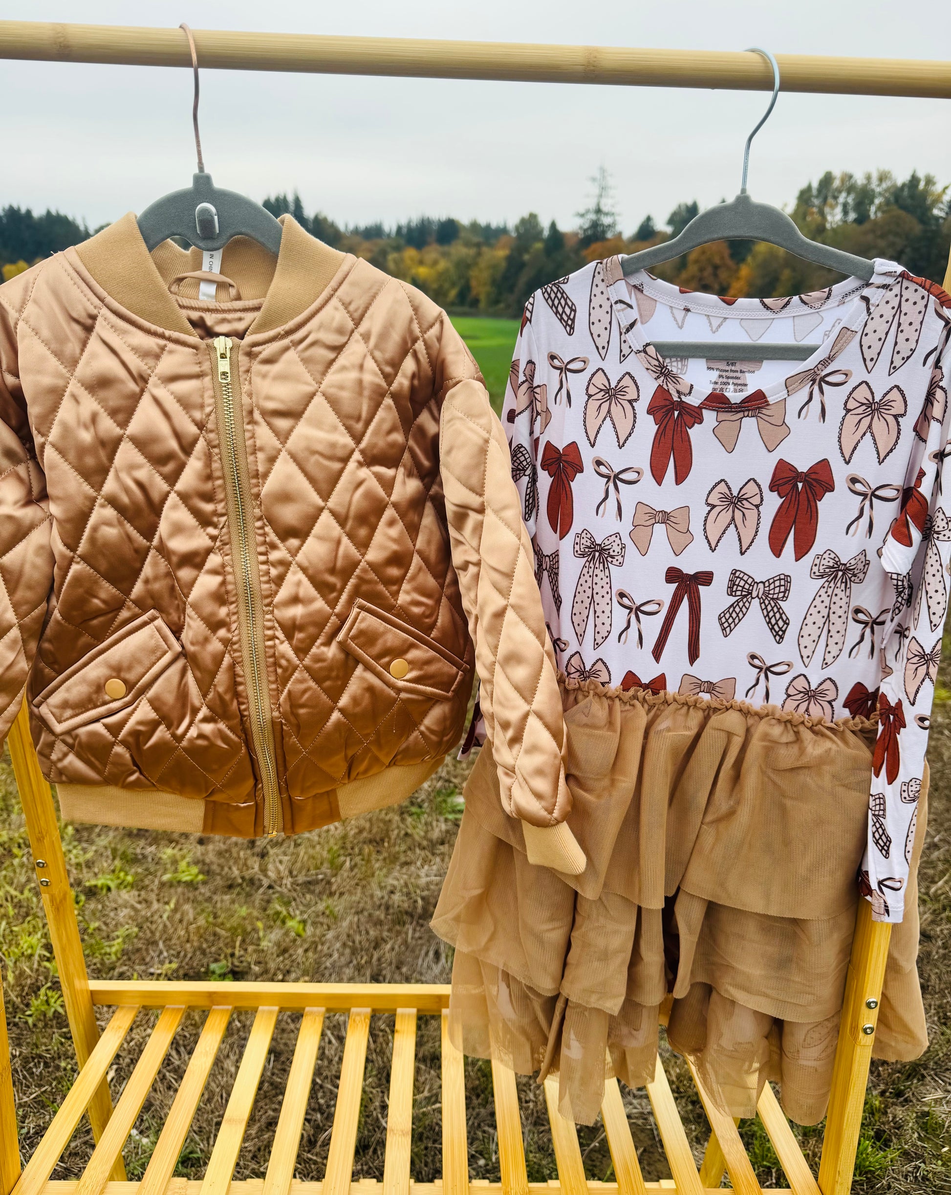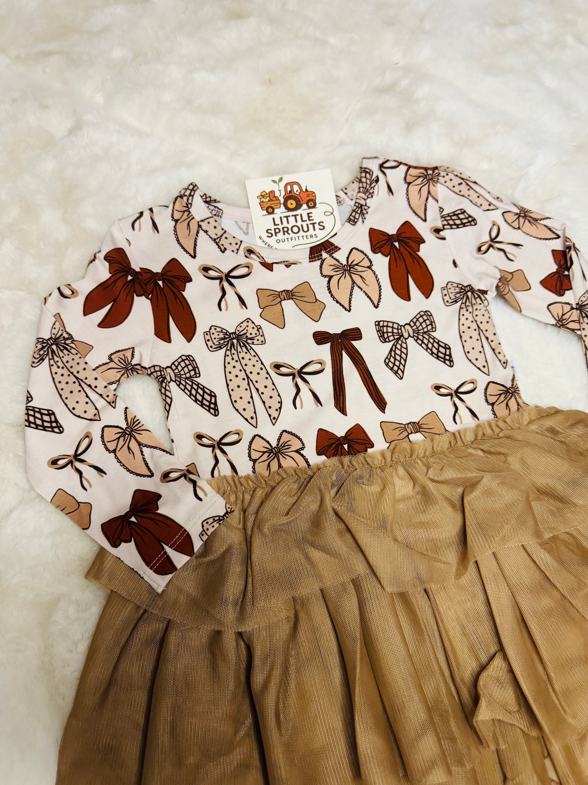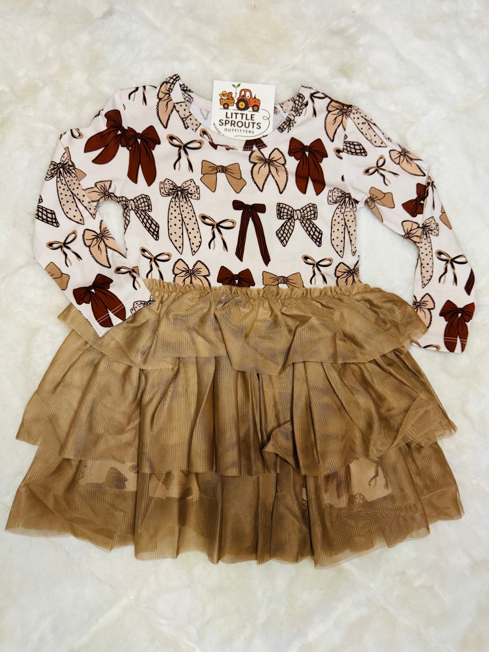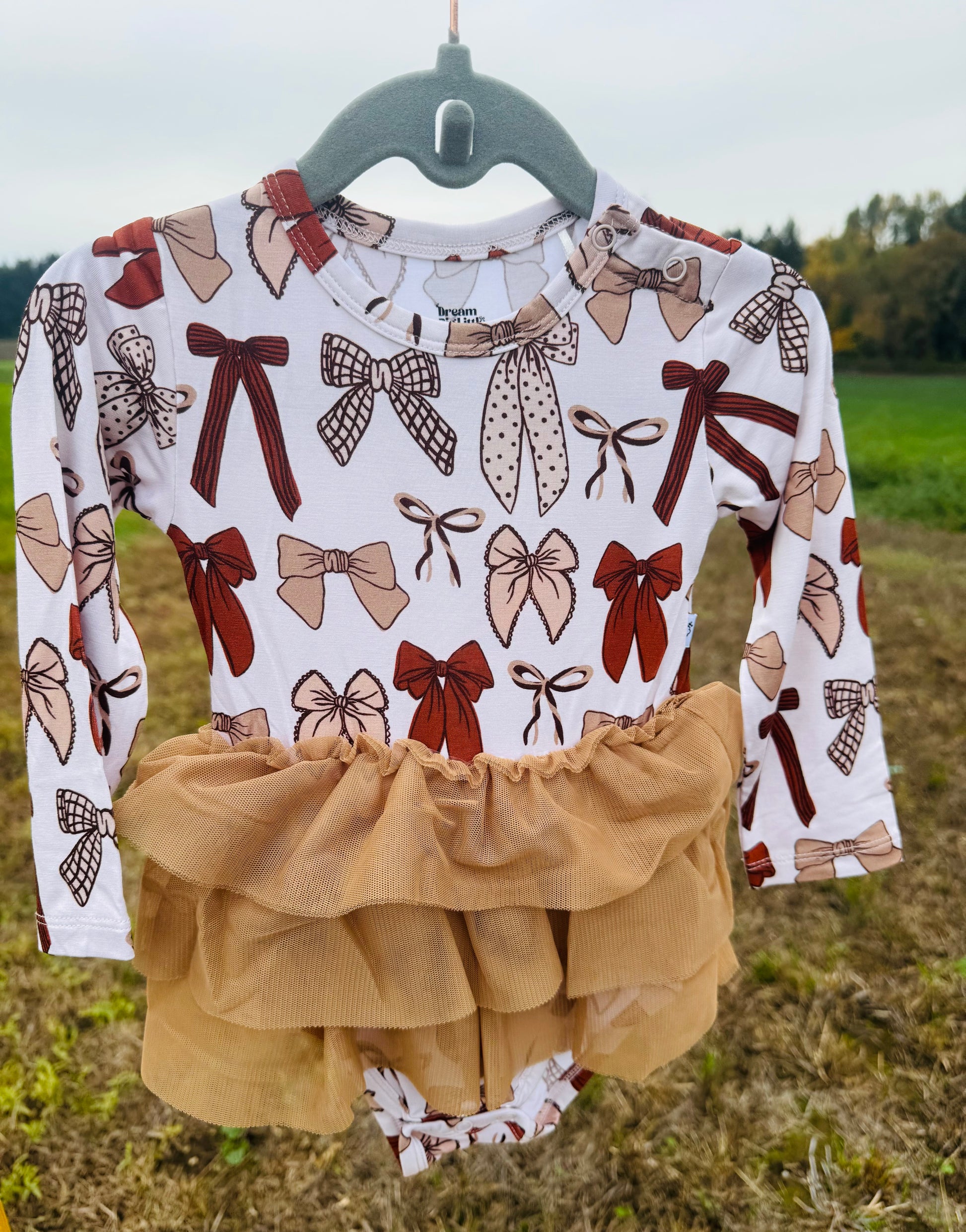 The Bow Tulle Tutu Long Sleeve Dress is made for twirls, parties, and everyday play with a touch of sparkle. Featuring a dainty bow print and a soft layered tulle skirt, it delivers all the charm of a dress-up moment with the comfort kids need to move, dance, and explore. Crafted from ultra-soft, breathable fabric, it’s cozy for cooler days yet lightweight enough to wear year-round. Sizes 12-18 & 18-24 months has a built-in bodysuit includes three easy-snap closures for quick changes, making it as practical as it is adorable. Perfect for birthdays, family gatherings, or simply feeling fancy any day of the week. Everyday style, farm-life tough.