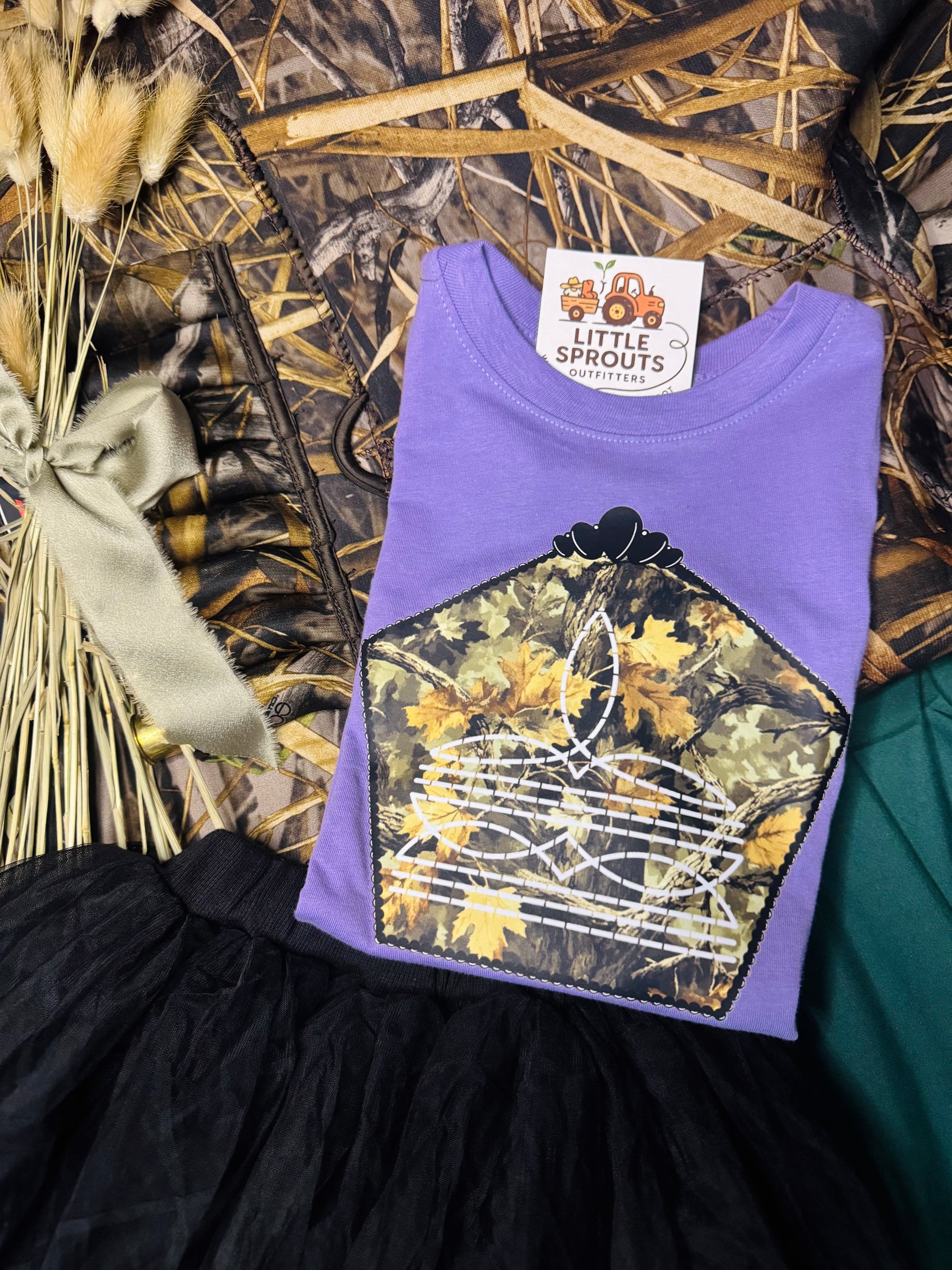 This Lavender Camo Crown Tee brings a playful, outdoors-inspired twist to a soft everyday staple. Set on a sweet lavender base, the camo crown graphic adds just the right mix of rugged charm and girly detail, making it a standout piece for little girls who love to roam in style.