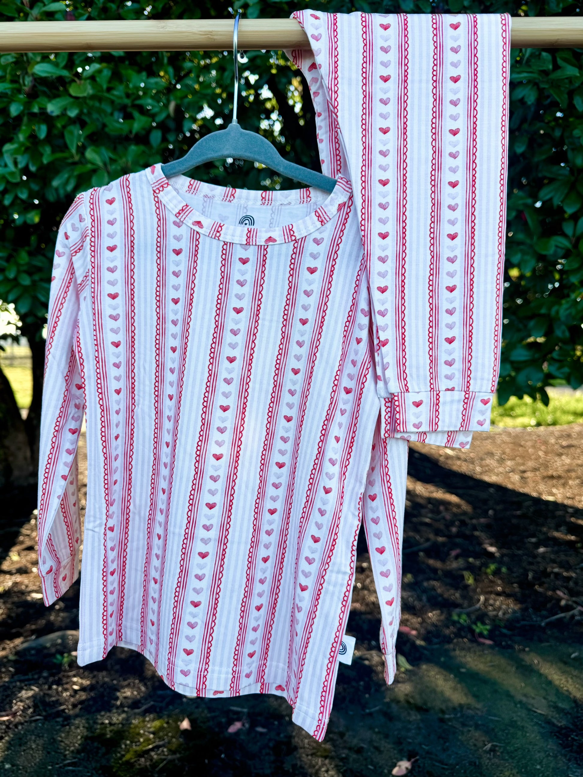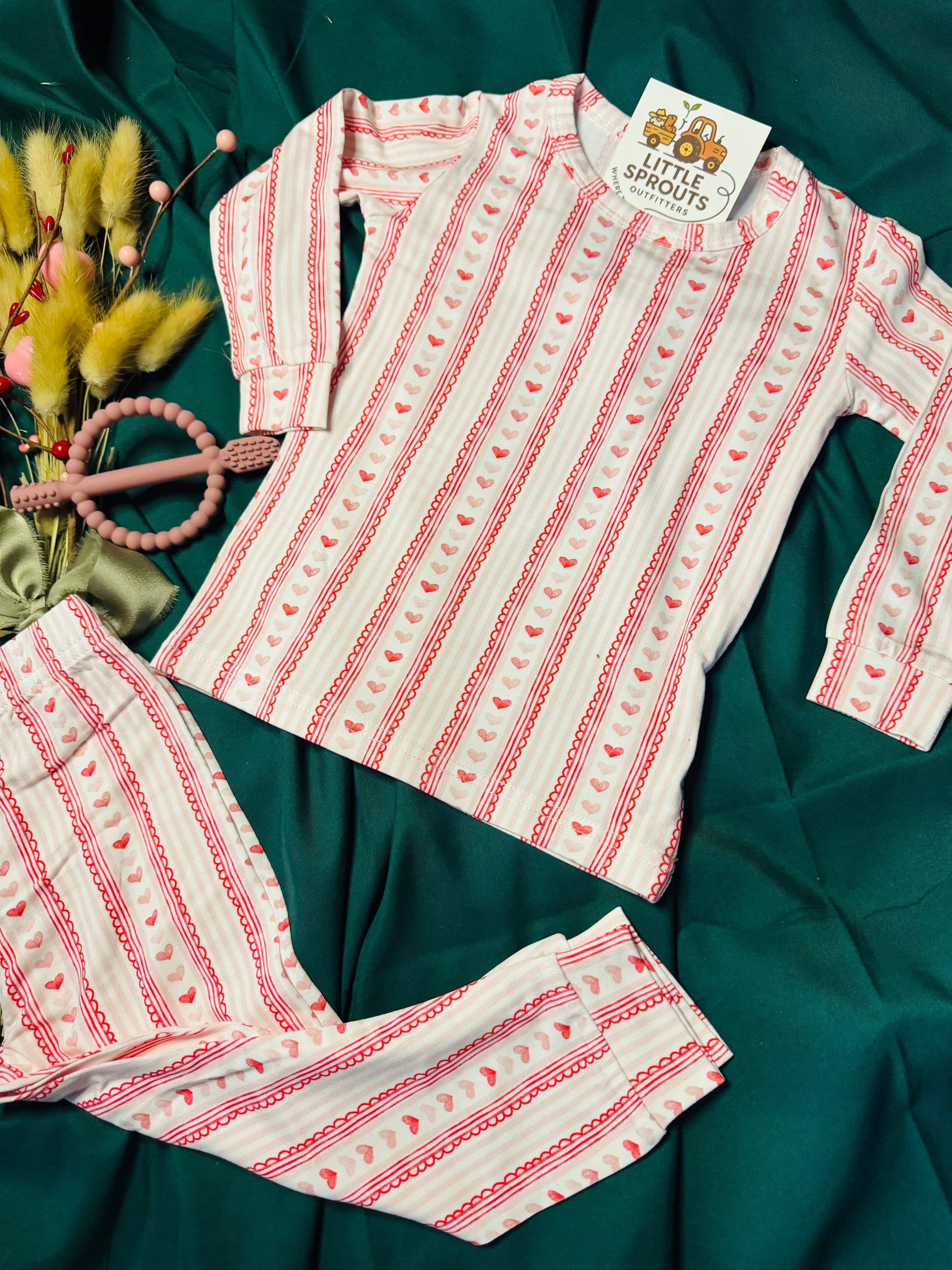 Our Laced In Love 2-Piece Bamboo Pajamas are made for cozy nights, sweet dreams, and all the love-filled moments in between. Featuring soft pink pinstripes accented with delicate heart details, this charming set brings a classic, romantic touch to bedtime. Crafted from our premium bamboo blend, these pajamas are buttery soft, stretchy, and breathable—gentle on sensitive skin and comfortable for all-night wear.