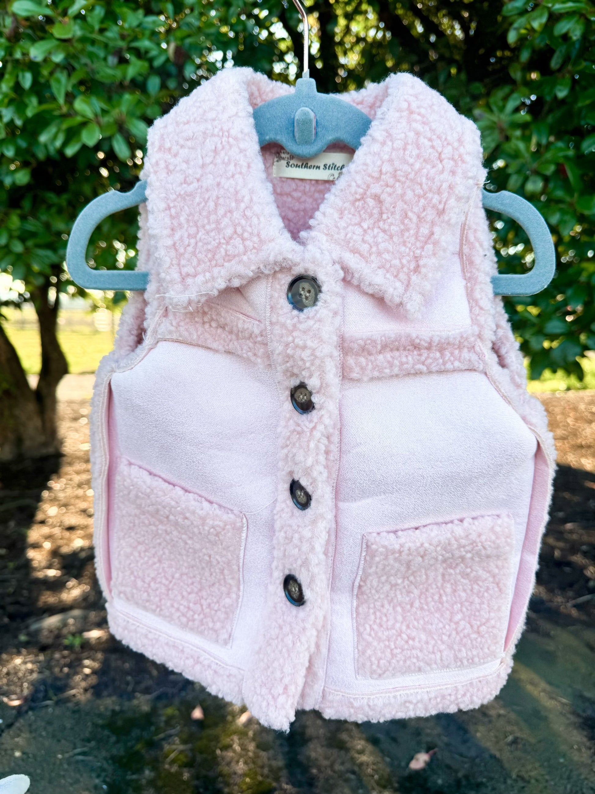 This Reversible Pink Sherpa Vest is the perfect cozy layer with a touch of soft, feminine charm. Featuring pale pink sherpa on one side and a smooth, breathable fabric on the other, this sleeveless vest offers two looks in one easy piece.