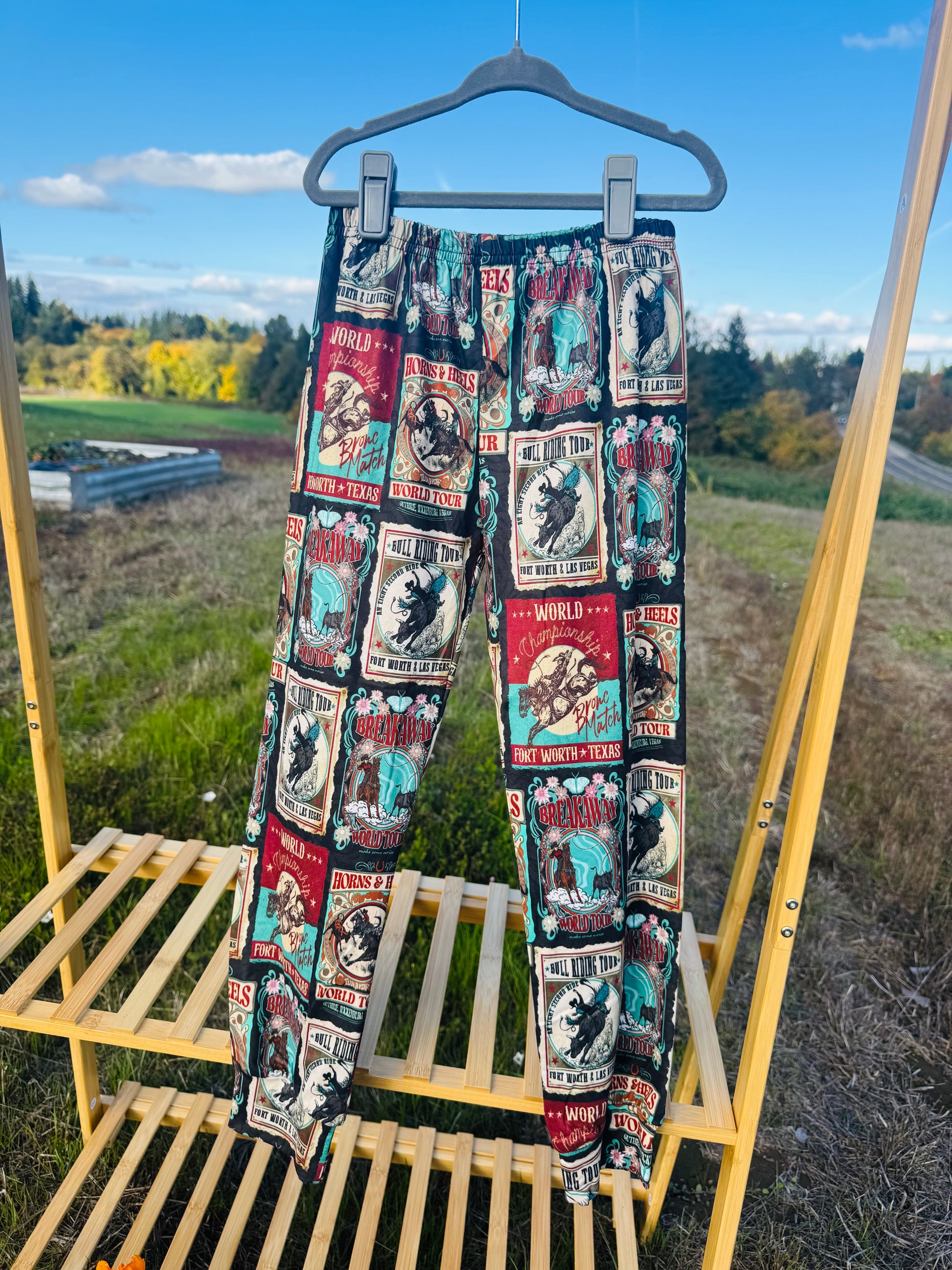 The Vintage Rodeo Joggers bring classic western charm to everyday comfort. Featuring a playful all-over print inspired by vintage rodeo posters, these joggers mix nostalgia with modern style—perfect for kids who love to move, explore, and stand out.